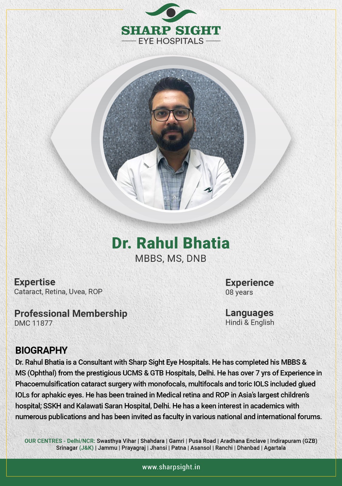 Consultant Ophthalmologist specializing in cataract, retina, uvea, and ROP management.