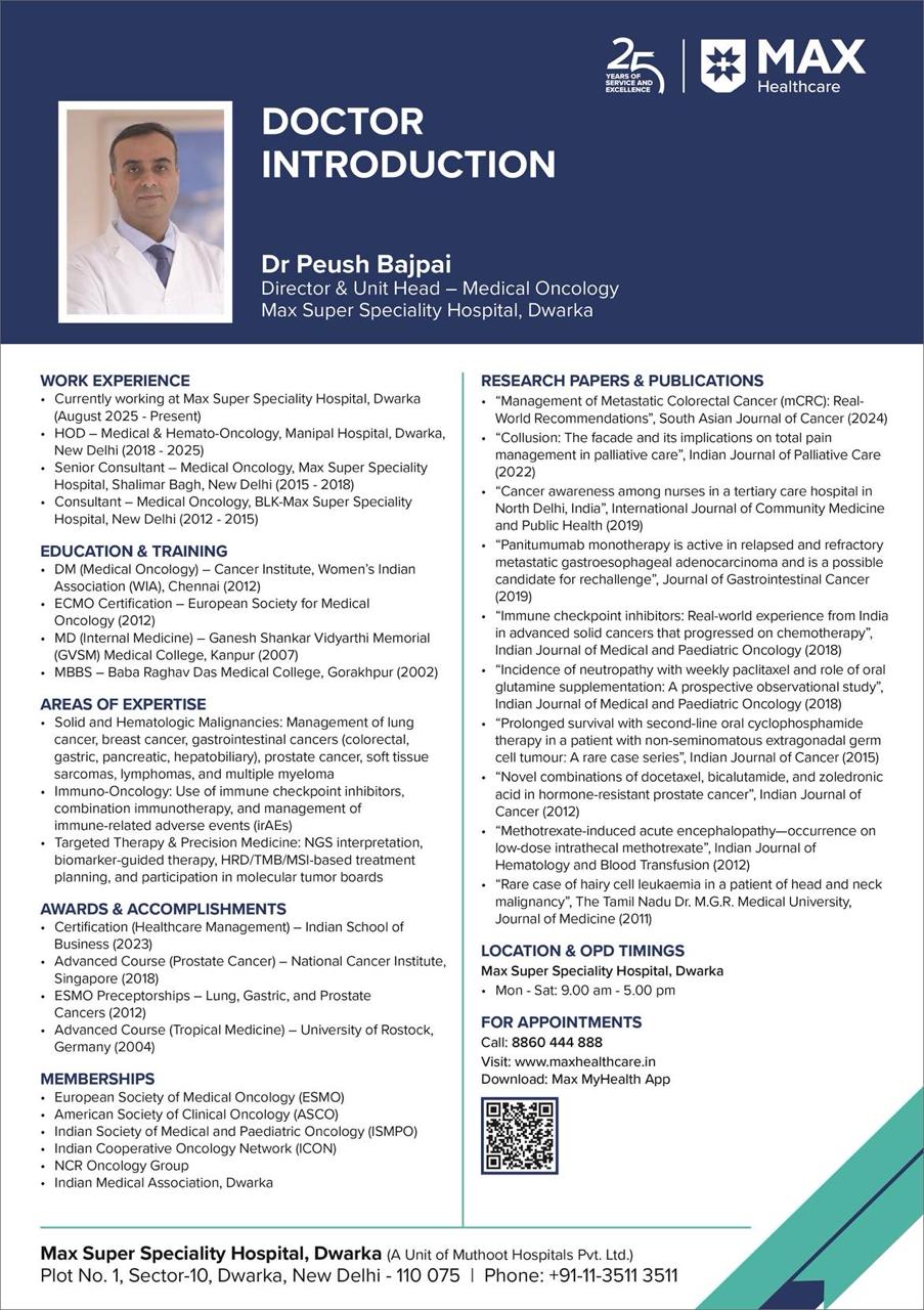 Director & Unit Head – Medical Oncology, Max Super Speciality Hospital, Dwarka